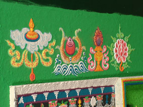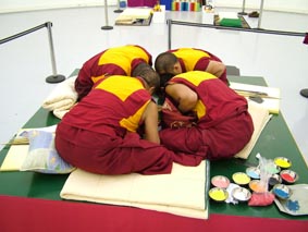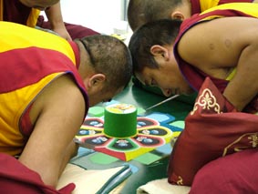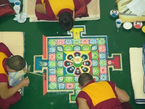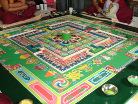 Iscrtavanje mandale u vremenu i prostoru na strogo određen način predstavlja i liječenje zemlje, jer postavlja elemente u ravnotežu i pridonosi općem skladu.