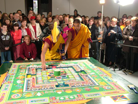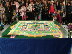 Naziv „mandala“ (Tib. dKyil-Khor) ima mnogo značenja, no uglavnom tumači se kao centar koji čini neizmjerna količina pozitivnog dobra poput planine i krug oko nje što zatvara drugu granicu horizonta ili polja pozitivnog djelovanja u sva tri vremena pojavnog svijeta. Zato se kaže da je mandala polje Univerzalnog mira koji bi se trebao razviti u svakom ljudskom biću. Savršenstvo koje mandala prikazuje vrhunski je sklad i cjelovitost čovjekovog prosvijetljenog stanja kojeg čini svijetlost mudrosti, ne-uvjetovane ljubavi, suosjećanja i neustrašivosti. Stoga mandala naglašava dobrotu probuđenog srca koje nije pod utjecajem razornih misli i emotivnih stanja. Ovakvo stanje čovjekove svijesti ne stvara neprijatelje oko sebe od kojih se ima za potrebu braniti. Ljudski um koji je u nemiru u sukobu je sa samim sobom a onda i sa okolinom i tu je glavni problem. Ako postoje istinski neprijatelji onda su oni zatrovana stanja vlastitog uma koja se očituju kroz mržnju, ljutnju, pohlepu, ponos i neznanje. Ove emocije su destruktivne prirode i stoga su istinski neprijatelji na putu postignuća istinske sreće za kojom težimo. Postizanje trajne sreće je temeljno prirodno ljudsko pravo kao i pravo na rođenje i slobodu.
