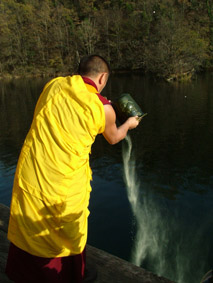U procesu razlaganja mandale krije se duboka simbolika otpuštanja čistih i blagotvornih energija koje su prizvane u simbole u posvećenim poljima mandale tokom izrade, tako što dolazi do širenja tog pozitivnog utjecaja u prostor i na ljude poput velikog kišobrana koji pokriva zemlju. Utjecaj ovog balansiranja energetskih kvaliteta elemenata u prostoru i čovjeku je dugotrajan stoga fizičko razlaganje mandale nije i kraj djelovanja iscjeljujućeg polja mandale u vremenu i prostoru gdje se ona izgradila.