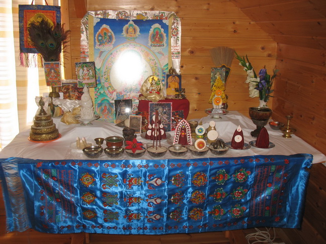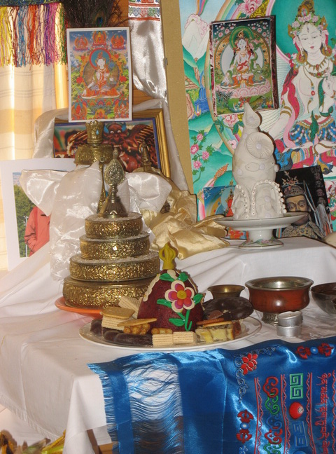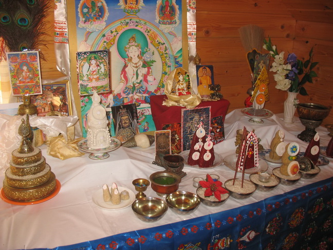 As the winds played around the dark corners of our wooden huts carrying the sound of the rustling of the leaves of the nearby trees, the early evening hours were imbued with silent meditation and the sounds of the recitation of mantras with the rituals of the consecration of substances like the nectar of wisdom and pills for long life, which were then consumed. Our two loyal listeners the domestic cat and dog also consumed the nectar and pills which were energized by the sound of the White Tara mantra. Later the horses were given the consecrated pills as a special blessing of Tara for a happy future life.