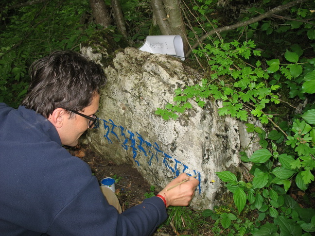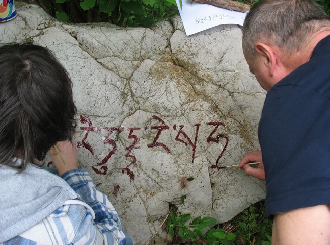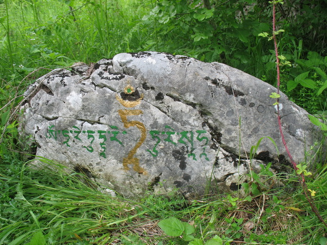 The afternoon meditation session in movement included writing the White Tara mantra and the seed syllable 'TAM' on the rocks along the pathway of the forest, alongside the previously carved Chenrezig (Buddha of compassion) mantras on the rocks, prayer flags strung on the trees and a small stupa built from rocks during the previous retreat.
