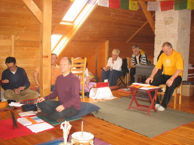 Detailed instructions on the practice of Yeshe Korlo including the Six Deity yogas of the action tantra and the visualization of the Deity Yeshe Korlo was given by the spiritual guide of the retreat Gen. Lobsang Norbu (Dragutin Šmalcelj) on the basis of oral transmission, which he received during his stay in the Himalayas from the late Lama Lati Rinpoche, the Ven. Geshe Locho Rinpoche and from many tantric yogis practicing in their isolated hermitages (tsam khang) in the remote Himalayan range.In order to create a correct and complete foundation for the mantra recitation, requires one to initially meditate on the 6 Deity yogas (Nel'jor Lha’ drug ) of which the first is the training in the yoga of the Deity of emptiness, followed by the Deity yoga of sound, letters, form, mudra and sign.